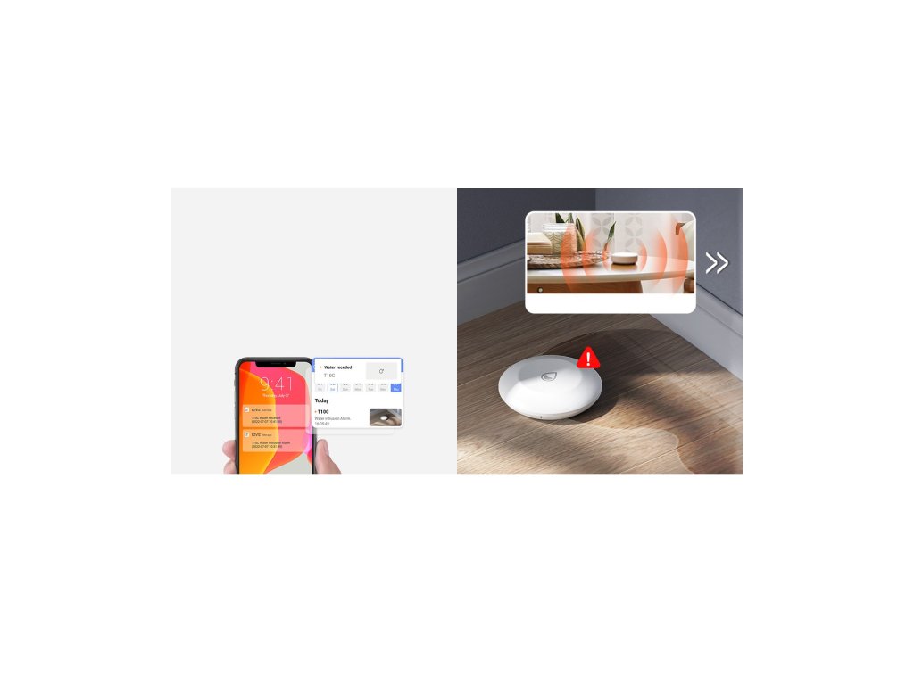 Nikdo nechce vejít do vlhkého sklepa nebo vytopené kuchyně. Pomocí chytrého senzoru můžete chránit svůj domov a dostávat upozornění na případné úniky vody. Díky malým rozměrům a snadnému použití můžete čidlo T10C umístit prakticky kamkoli v blízkosti přívodu vody, umyvadla nebo toalety. V případě zjištění jakéhokoli úniku vody, ať už malého nebo velkého, se ozve zvukový alarm a upozornění se odešle přímo do vašeho telefonu.