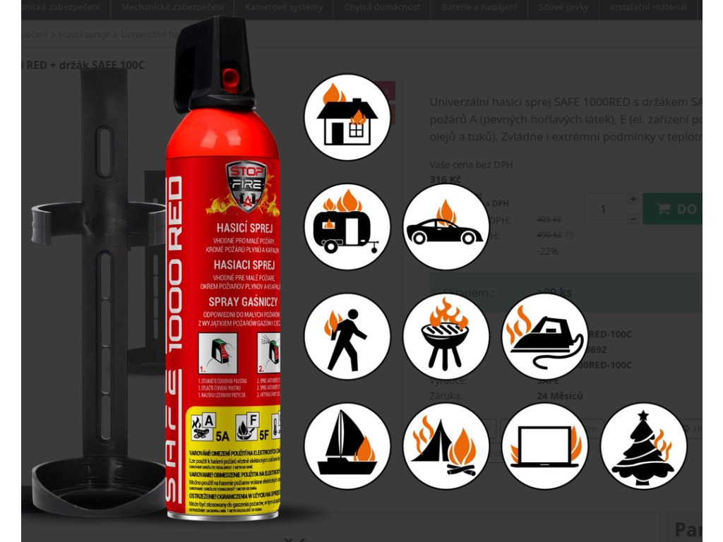Díky vyššímu obsahu aktivních látek se tento sprej řadí mezi nejúčinnější a nejuniverzálnější hasicí prostředky na trhu.