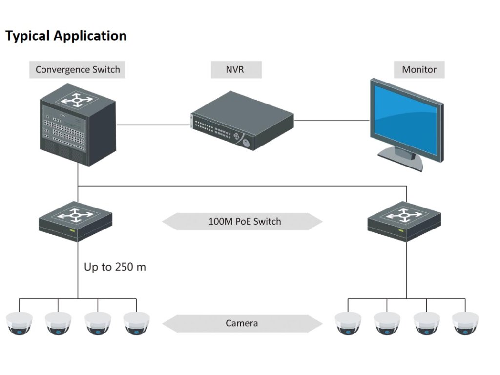 - Výrazné zjednodušení zapojení IP kamer s podporou PoE