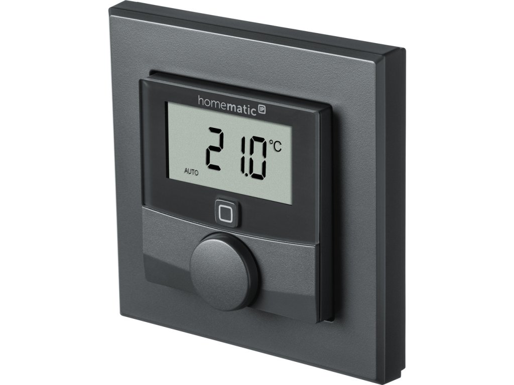 Jedním z takových zařízení je i bezdrátový Nástěnný termostat se senzorem vlhkosti v antracitové barvě (HmIP-WTH-A) z řady Homematic IP s podsvíceným LED displejem o velikosti 1,74" pro zobrazení teploty a vlhkosti představující inteligentní způsob regulace vytápění a úspory energií.