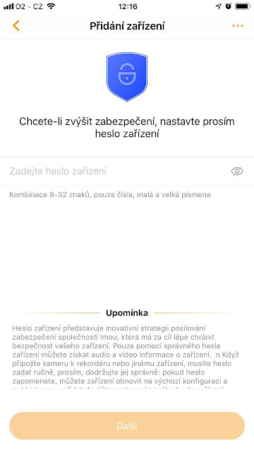 Heslo: Do této kolonky zadejte heslo, které jste si přidali ke kameře v 8. kroku. (neplést s heslem, které máte k účtu v aplikaci Imou)