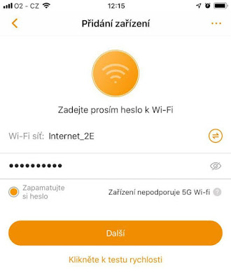 V zápětí si aplikace vyžádá zadání hesla na Vaší domácí wifi síť.