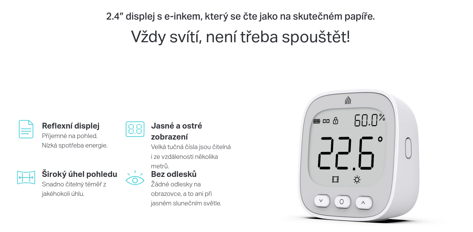 - 2,4" displej s elektronickým inkoustem - Jasný a ostrý, vždy jasný, s nízkou spotřebou energie a širokým zorným úhlem.