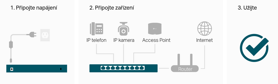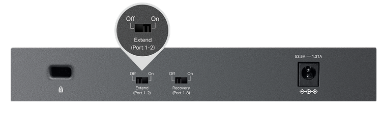 V režimu Extend dosahuje PoE přenosová vzdálenost až 250 m** — ideální pro nasazení IP kamer v rozsáhlých oblastech.